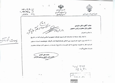 صراط: خبرگزاری صداوسیما نوشت: کیومرث هاشمی گفت: اساسنامه فدراسیون فوتبال با تایید فیفا و تشکیلات ورزش به دولت رفت و تصویب شد.