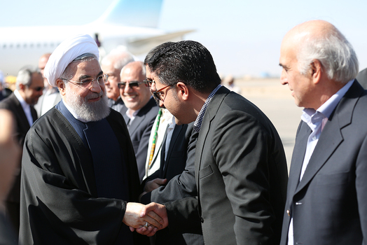 حسن روحانی رئیس جمهور به همراه محمدرضا عارف، به یزد وارد شد.