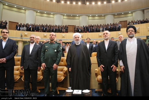 دهمین سالگرد روز ملی فناوری هسته ای روز پنجشنبه با حضور حجت الاسلام والمسلمین حسن روحانی ، جمعی از مسئولان و خانواده شهدای هسته ای در سالن اجلاس سران برگزار شد.