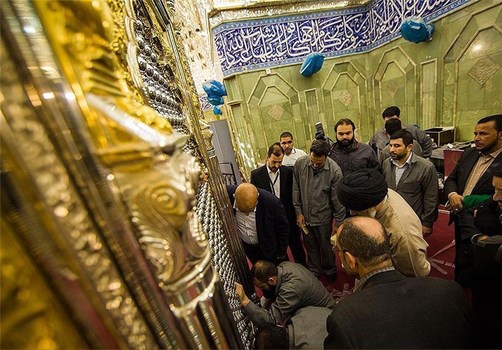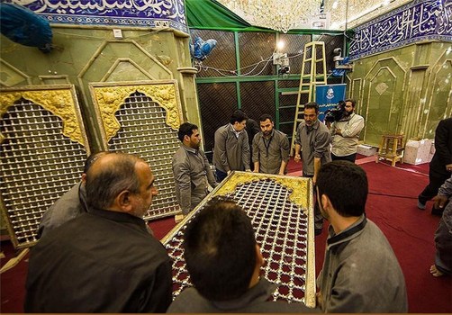 نصب آخرین پنجره‌های ضریح حضرت عباس (ع)+تصاویر
