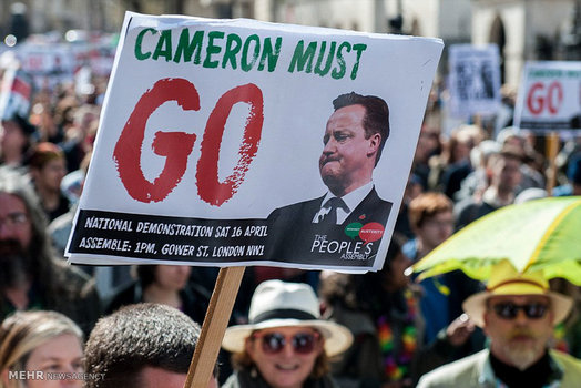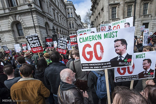 پس از اذعان دیوید کامرون، نخست وزیر انگلیس به صحت اسناد پاناما و دست داشتن وی در فرار مالیاتی، هزاران نفر با تظاهرات در لندن خواستار استعفای نخست وزیر شدند.