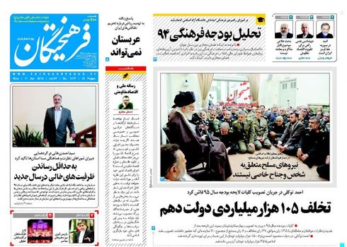 صفحه اول روزنامه های دوشنبه ۲۳ فروردين