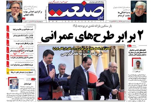صفحه اول روزنامه های اقتصادی پنجشنبه ۲۶ فروردين