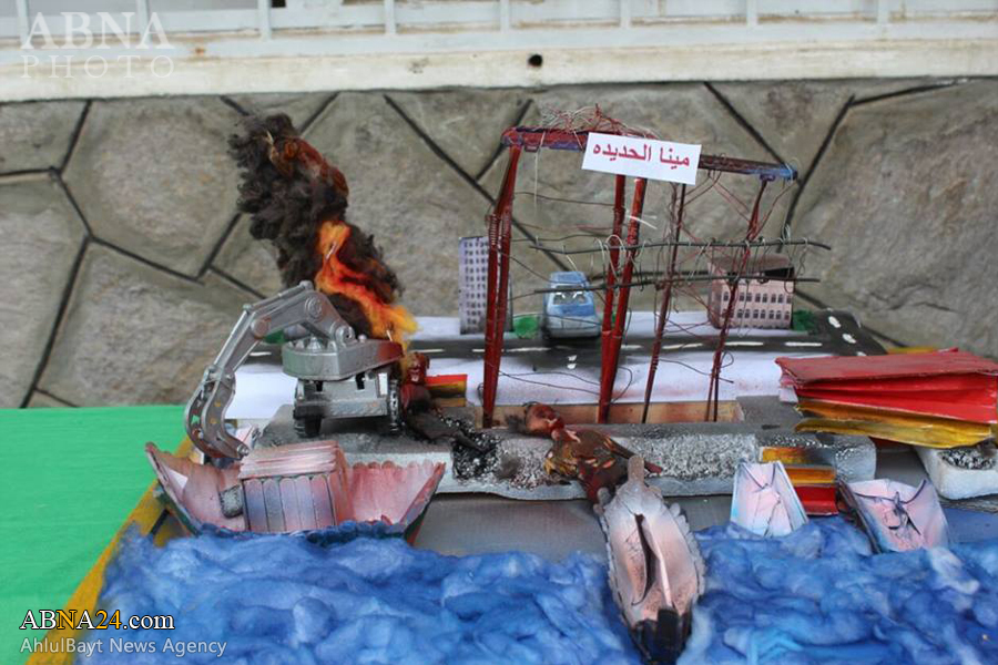 یک شهروند یمنی از اهالی شهر جبله واقع در استان إب جنایات دشمن سعودی ـ آمریکایی ـ تکفیری را طی یک سال حملات وحشیانه که علاوه بر شهادت و زخمی شدن هزاران یمنی خسارات زیادی به زیرساخت‌های این کشور وارد کرده به شکلی هنری و در قالب ماکت‌هایی به تصویر کشیده است.