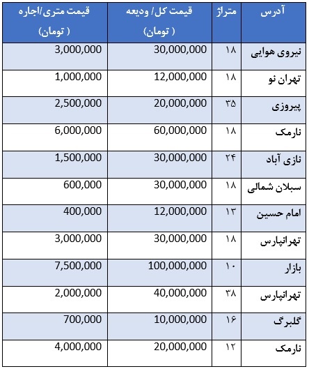 جدول/ قیمت اجاره مغازه در شرق تهران