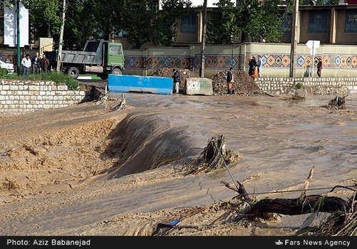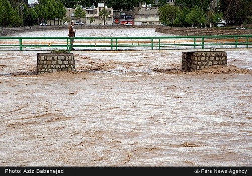 در پی بارش های اخیر در خرم آباد رودخانه این شهر ظغیان کرده و پل های موقت احداث شده در این رودخانه را آب فرا گرفته است.