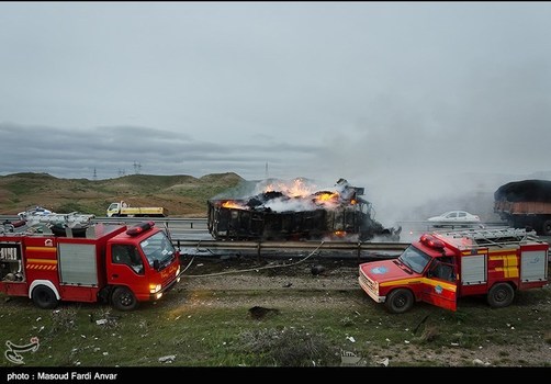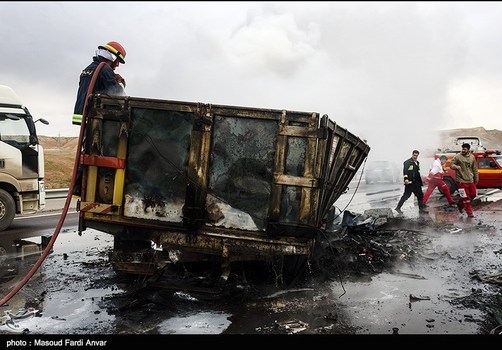 صبح امروزدر اتوبان تهران به تبریز حد فاصل شهر زنجان و میانه در اثر برخورد یک دستگاه کامیون به یک وانت نیسان و یک کامیون دیگر ۳ نفر کشته و ۱ نفر زخمی شدند.