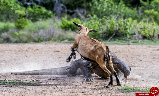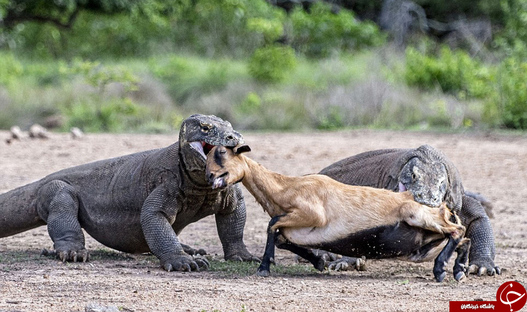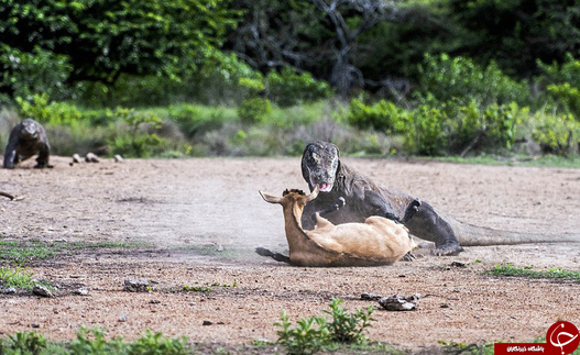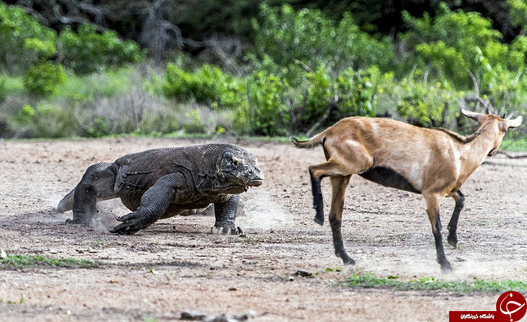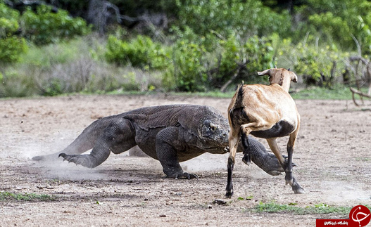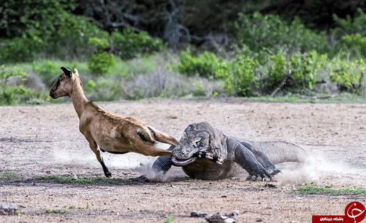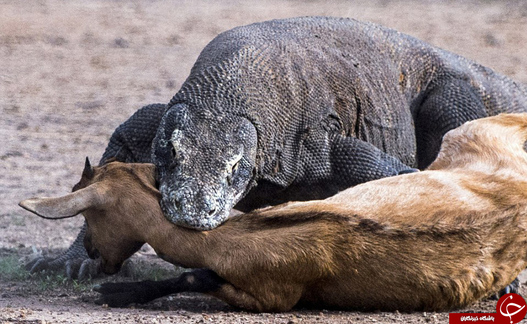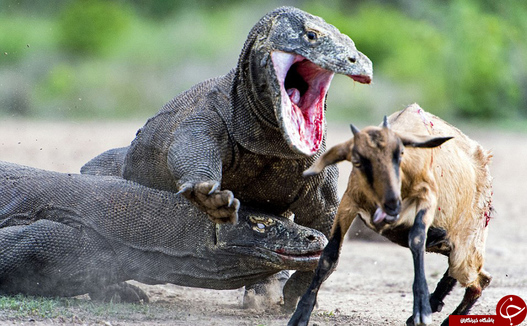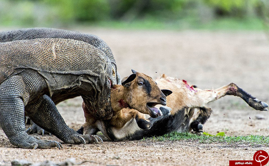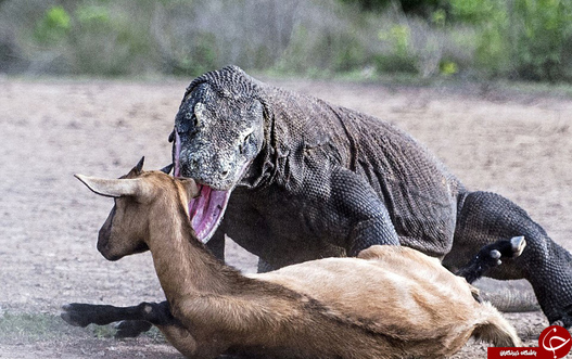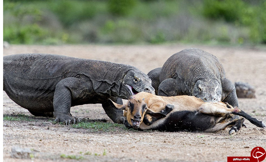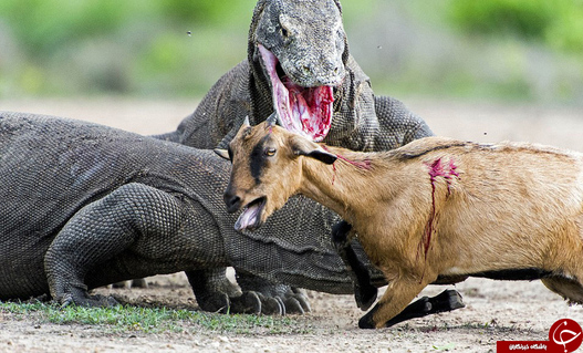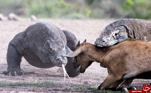 کند. درادامه تصاویری ازلحظه شکار یک بز به وسیله سوسمارهای غول پیکر را