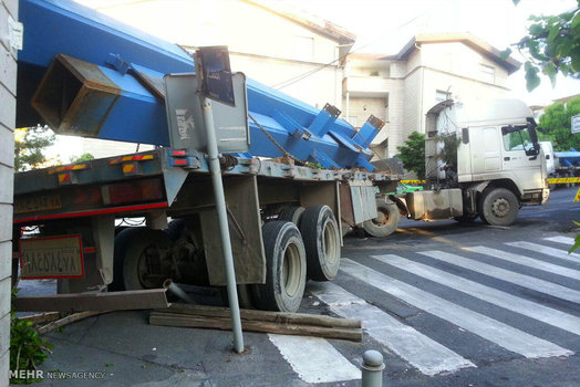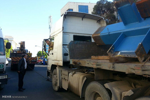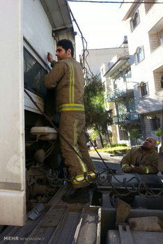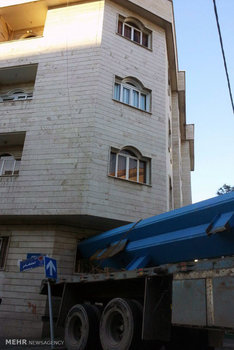 تصاویر/ برخورد تریلی با ساختمان مسکونی