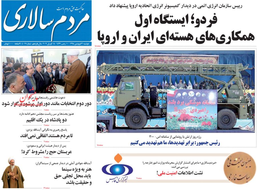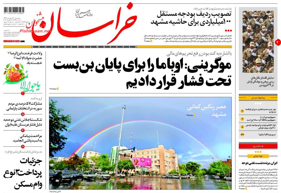 صفحه اول روزنامه های دوشنبه ۳۰ فروردين