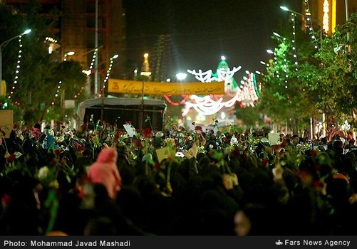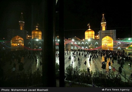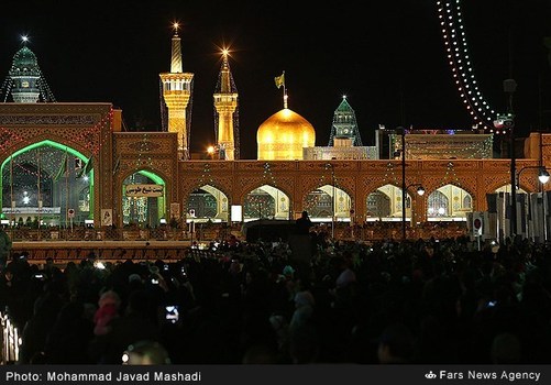 تصاویر/ گلباران حرم رضوی در شب میلاد