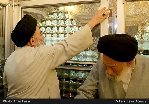 تصاویر/ غبار روبی حرم احمد ابن موسی(ع)