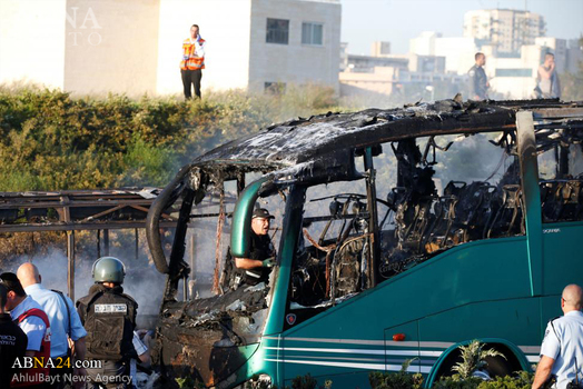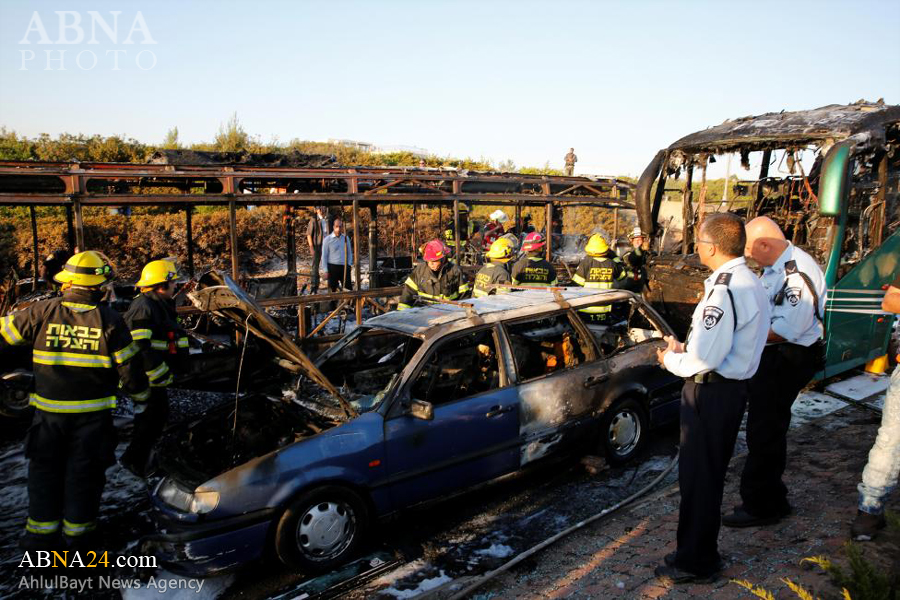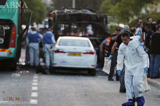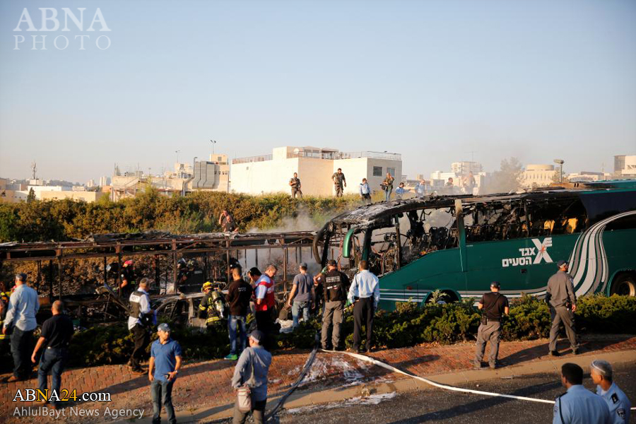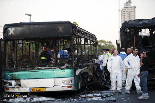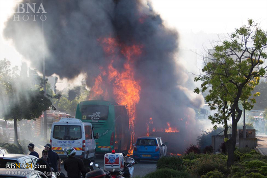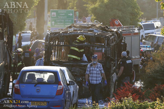 تصاویر/ انفجار اتوبوس در قدس اشغالی
