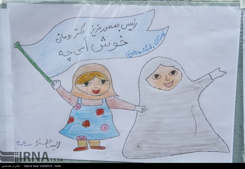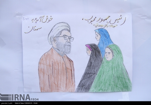 این مجموعه از تصاویر تصویرگری کودکان سمنانی از سفر حجت الاسلام والمسلمین حسن روحانی رییس جمهوری اسلامی ایران به استان سمنان را نشان می دهد.