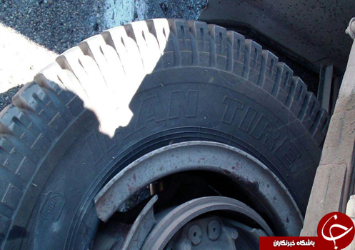بوده که با ترکیدن باعث واژگونی کامیون شده است.