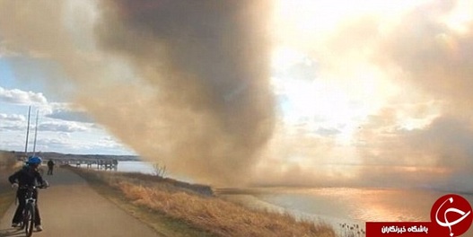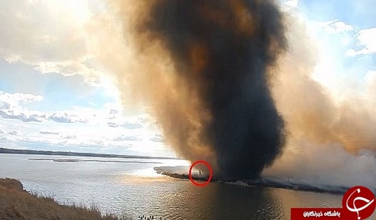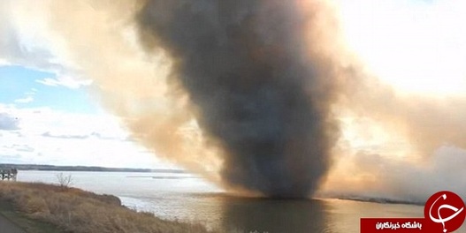 این تصاویر زمانی گرفته شد که آتش نشانان برای مقابله با یک آتش سوزی به آلبرت کانادا رفته بودند، با گرد باد عجیب و غریبی روبرو شدند که یکی از کارمندان برای فرار از این حادثه مهیب و کشنده خود را به درون دریاچه پرتاپ می کند.