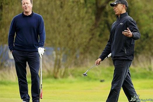 اوباما که برای باقی ماندن انگلیس در اتحادیه اروپا به این کشور سفر کرده بود، در روز شنبه بازی گلفی را با دیوید کامرون نخست وزیر انگلیس انجام داد.