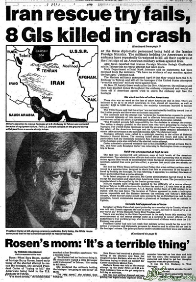 به گرازش فارس، روزنامه آمریکایی «نیویورک دیلی نیوز» روز گذشته (شنبه) به مناسبت سالگرد این ماجرا متنی از گزارش  25 آوریل سال 1980خود را منتشر نمود.