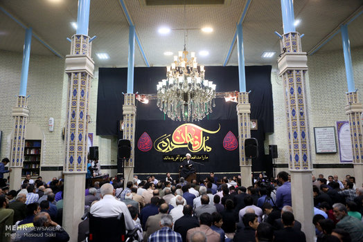مراسم بزرگداشت شهدای مدافع حرم، شامگاه یکشنبه با مداحی حاج محمود کریمی در مسجد فاطمیه برگزار شد.