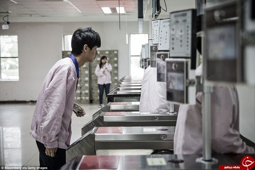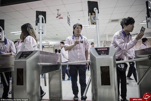 قبل از ورود به خط مونتاژ، چهر های کارمندان توسط روتور یا گیت های امنیتی شناسایی و ساعت ورودشان ثبت می شود. بیش از 50 هزار کارمند به منظور مونتاژ گوشی های اپل در کارخانه مشغول به کارن هستند، کارخانه ای که وسعت آن به بزرگی 90 میدان فوتبال است.