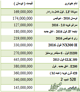 باشگاه خبرنگاران نوشت: قیمت انواع خودرو وارداتی به شرح جدول زیر است:
