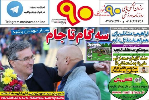 صفحه اول روزنامه های ورزشی پنجشنبه ۹ ارديبهشت