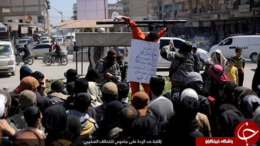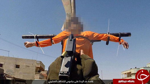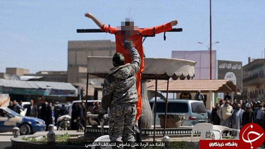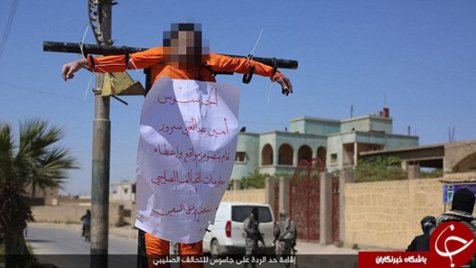 به گزارش پایگاه اینترنتی دیلی میل؛ گروه تروریستی داعش دو مرد را به اتهام جاسوسی در میدان اصلی شهر رقه به صلیب کشید و آنها را در مقابل چشمان دهها زن و مرد و کودک، با شلیک گلوله به سر اعدام کرد.