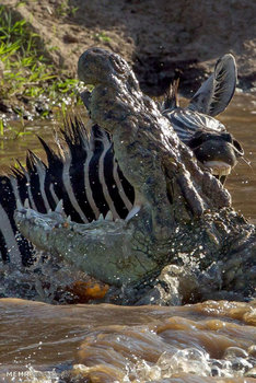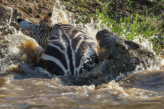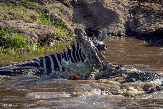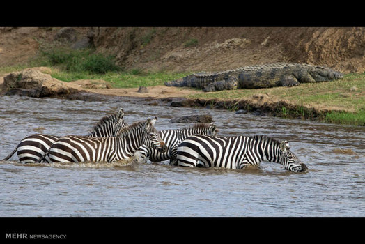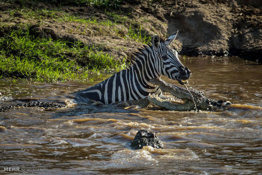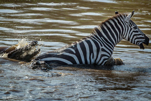 این تصاویر که در منطقه حفاظت شده ماسایی مارا در کنیا گرفته شده، عبور دسته ای گورخر از عرض رودخانه مارا را نشان می دهد که با حمله کروکدیل های گرسنه مواجه می شود.