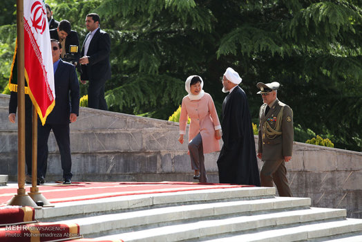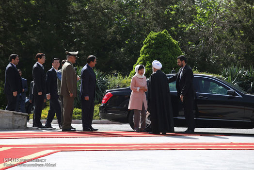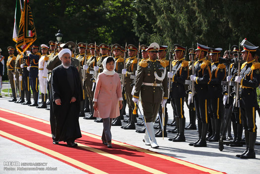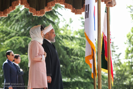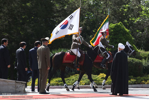 مراسم استقبال رسمی از رییس جمهور کره جنوبی صبح امروز دوشنبه با حضور حسن روحانی رئیس جمهور در مجموعه سعدآباد تهران برگزار شد.