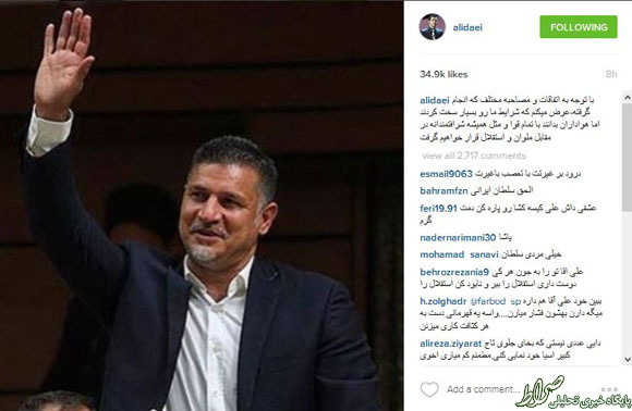 سرمربی صبای قم پس از حواشی ایجاد شده و مصاحبه اسپانسر تیم که گفته بود دایی از تیم اخراج است در صفحه اینستاگرام خود به این موضوع واکنش نشان داد. او در این پست نوشت: با توجه به اتفاقات و مصاحبه مختلف كه انجام گرفته،عرض ميكنم كه شرايط ما رو بسيار سخت كردند اما هواداران بدانند با تمام قوا و مثل هميشه شرافتمندانه در مقابل ملوان و استقلال قرار خواهيم گرفت.