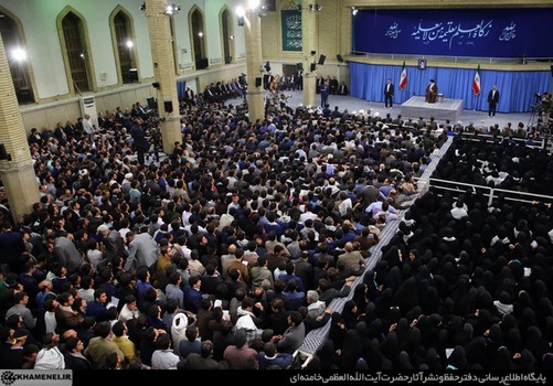 به مناسبت هفتهی معلم، هزاران نفر از معلمان، فرهنگیان و دانشجویان دانشگاه فرهنگیان سراسر کشور، صبح امروز (دوشنبه) با حضور در حسینیهی امام خمینی رحمهالله با حضرت آیتالله خامنهای رهبر انقلاب اسلامی دیدار کردند.