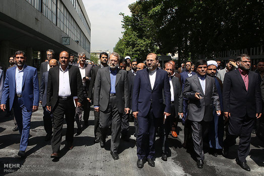 مراسم تشییع پیکر مرحوم محمدعلی حسین زاده نماینده مردم مراغه و عجب شیر صبح امروز یکشنبه با حضور علی لاریجانی رئیس مجلس شورای اسلامی از مقابل ساختمان مجلس قدیم برگزار شد.