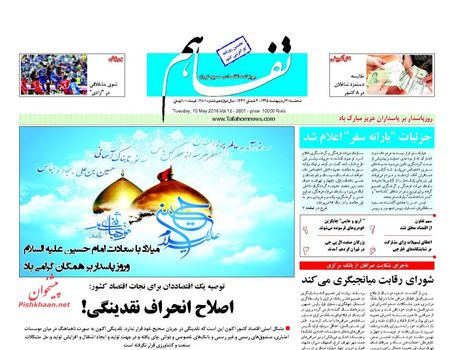 صفحهاول روزنامههای اقتصادی سهشنبه ۲۱ ارديبهشت را مشاهده می کنید.