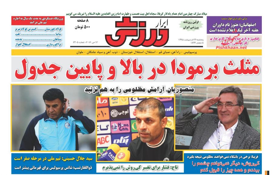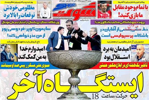 صفحهاول روزنامه های ورزشی پنجشنبه ۲۳ ارديبهشت