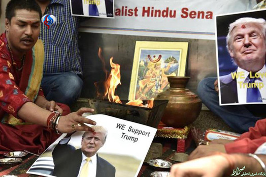 دهها نفر از اعضای یک گروه هندوی راستگرا در مراسم دینی آتش روشن کرده و با خواندن آوازهای آیینی خود از "الهه های" خودشان خواستند تا به کمک ترامپ برای پیروزی در انتخابات ریاست جمهوری بیاید.