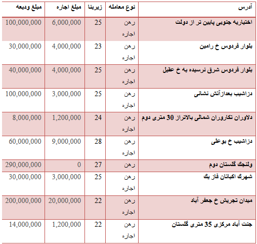 رهن و اجاره مغازه در تهران به شرح زیر است: