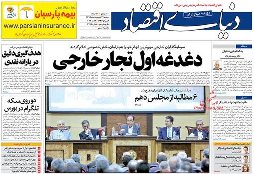 صفحه اول روزنامه های اقتصادی دوشنبه ۲۷ ارديبهشت