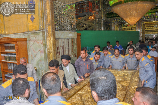 به گزارش ابنا، گروه مهندسی نگهداری عتبه علوی، اقدام به درآوردن این درب کرد و سپس برای تعمیر و بازسازی، این درب تاریخی و طلا کوب را منتقل نمود.