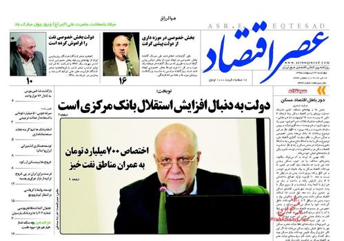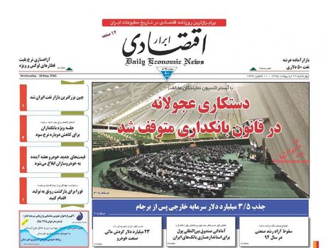 صفحه اول روزنامه های اقتصادی چهارشنبه ۲۹ ارديبهشت