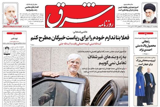 صفحه اول روزنامه های پنجشنبه ۳۰ ارديبهشت