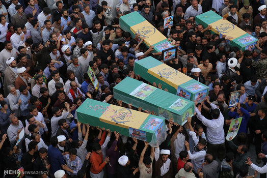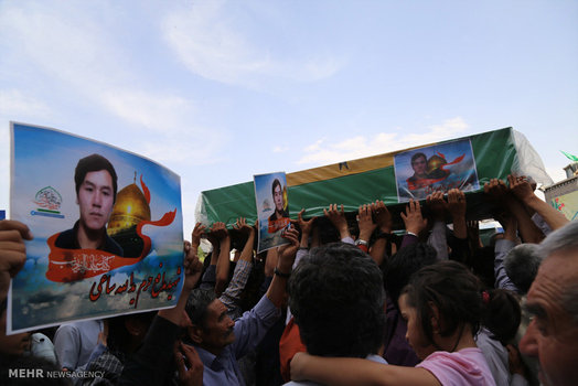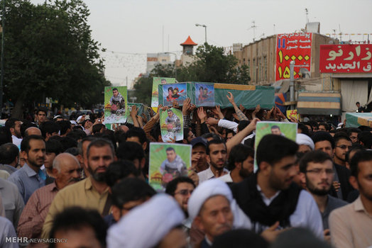 مراسم تشیع پیکر پنج شهید مدافع حرم بعد از ظهر چهارشنبه با حضور گسترده مردم در شهر مقدس قم برگزار شد.