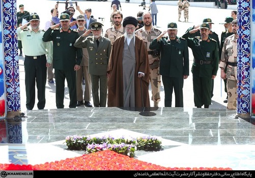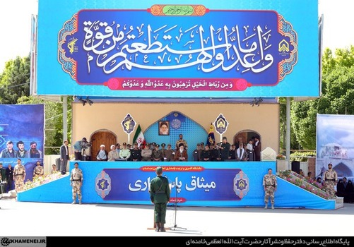 در روز «مقاومت، ایثار و پیروزی» و در سالگرد عملیات غرورآفرین بیتالمقدس و فتح خرمشهر، صبح امروز (دوشنبه) مراسم دانشآموختگی، تحلیف و اعطای درجه سردوشی دانشجویان دانشگاه افسری و تربیت پاسداری امام حسین (علیه السلام) با حضور حضرت آیتالله خامنهای فرمانده معظم کل قوا برگزار شد.