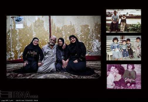 عکس خانواده نجم کاظم پور را در دوران جنگ و امروز نشان می دهد. نجم کاظمی پور 74 ساله که در زمان جنگ صاحب 6 فرزند بود، به همراه خانواده خود سه ماه و نیم در خرمشهر ماندند تا سرانجام توسط نیروهای عراقی به اسارت در آمد .