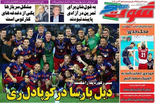 صفحه اول روزنامه های ورزشی سهشنبه ۴ خرداد
