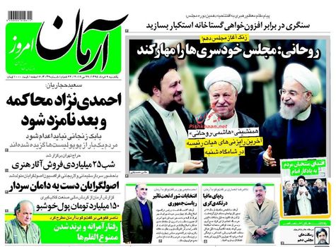 صفحه اول روزنامه های یکشنبه ۹ خرداد