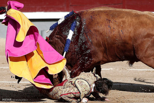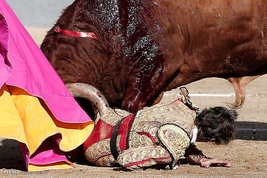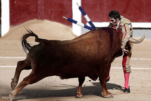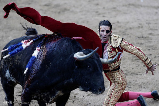 تصاویر/ جدال ماتادور تک چشم با گاو زخمی