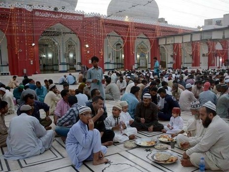 افطاری عمومی مردم پاکستان در مساجد مختلف دیدنی است. آنها قبل از اذان مغرب، برای خواندن قرآن به مساجد میروند و پس از برگزاری نماز جماعت، در افطاری عمومی حضور مییابند. در ادامه تصاویری از مراسم افطاری عمومی در مناطق مختلف پاکستان را مشاهده کنید: