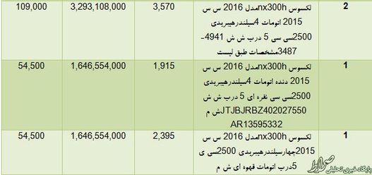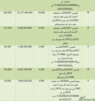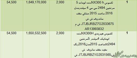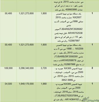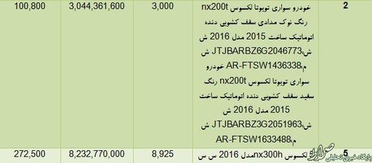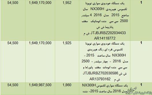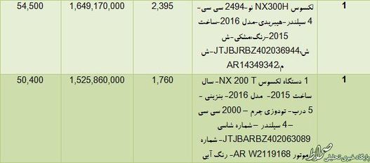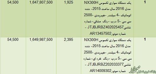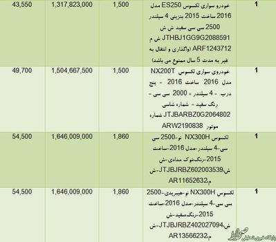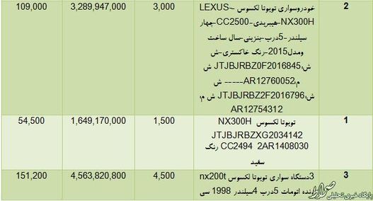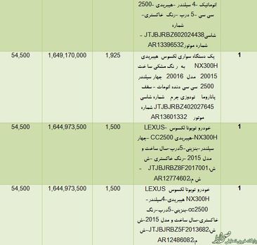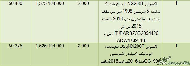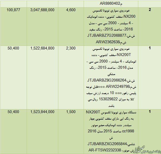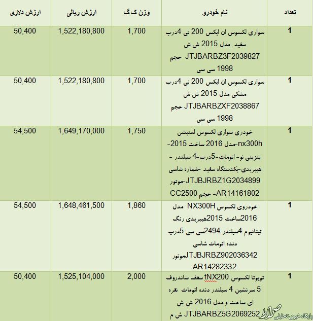 جزییات واردات لکسوس در فروردین ماه سال جاری به شرح زیر است :