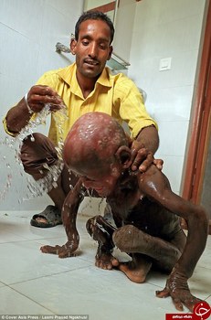 صراط: این پسربچۀ نپالی از بیماری ایکتیوز رنج میبرد، بر اثر این بیماری پوست بهسرعت رشد میکند و بسیار سفت میشود.