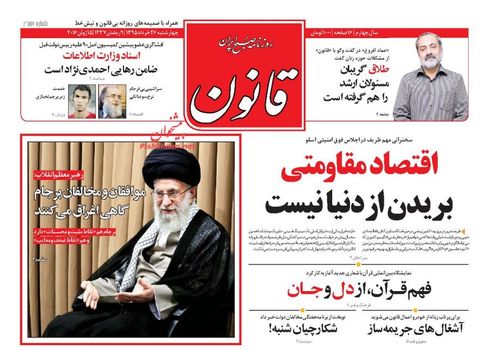 صفحه اول روزنامه های چهارشنبه ۲۶ خرداد